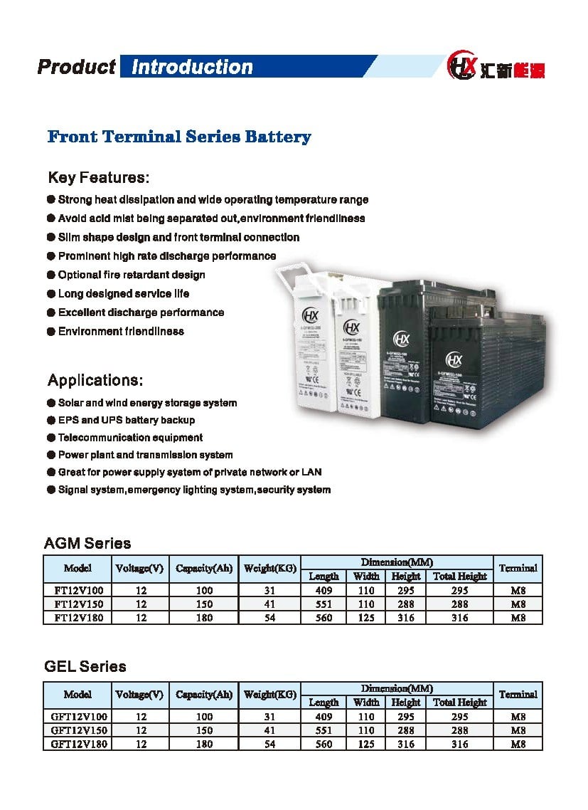 Founded in 1991, Huixin Battery has a production area of 13,000 square meters and a total asset value of more than 15.8 million yuan. We employ more than 20 professional engineers and technical persons. With the Introducing of several International or domestic key equipment and technologies, our lead-acid batteries have reached or exceeded national standards.