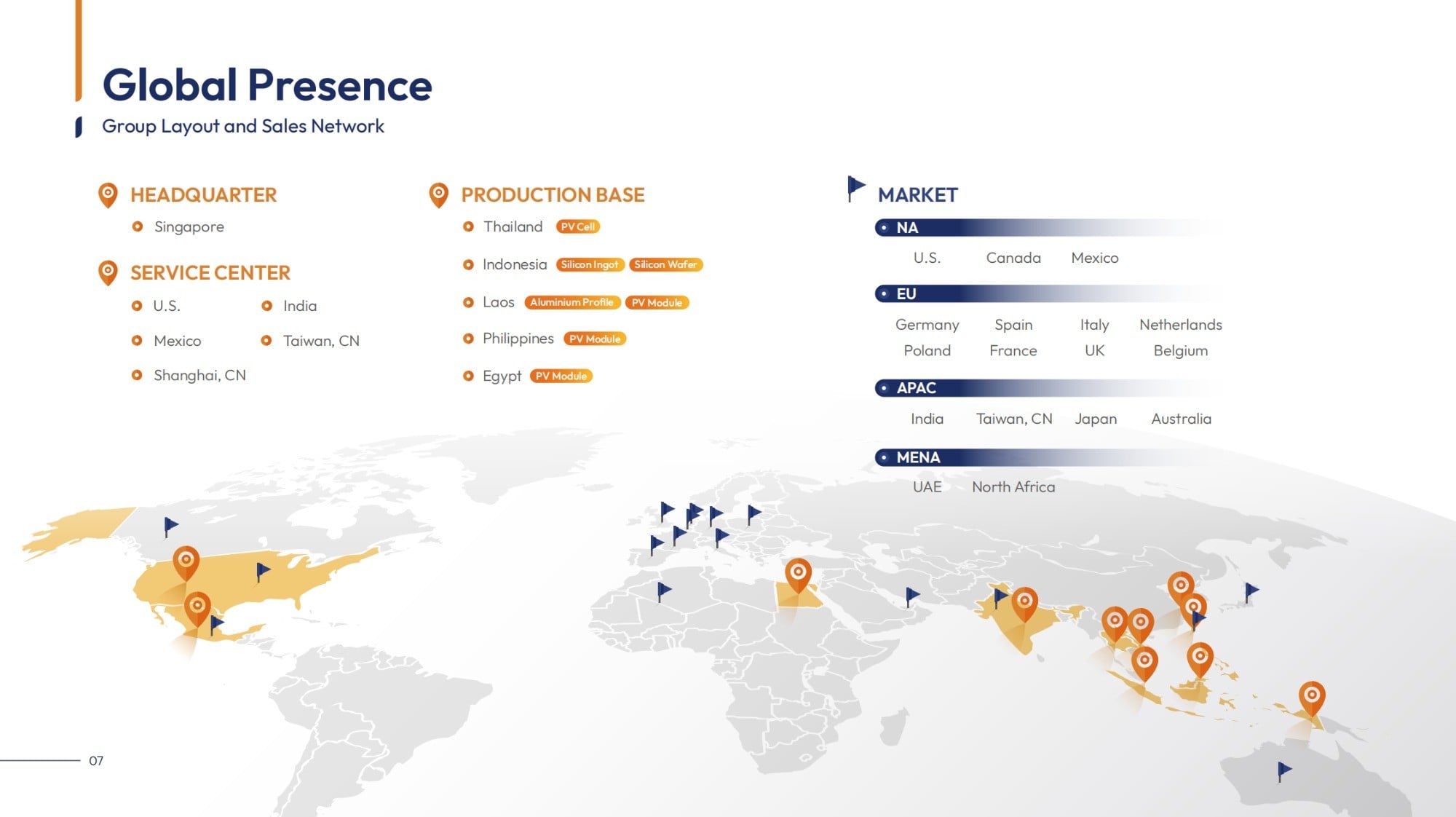 G-STAR maintains a global strategy with a "1+N" model, one headquarters in Singapore, with N bases covering the United States, China, India, Mexico, Thailand, Indonesia, Laos, the Philippines, and Egypt. By 2025, G-STAR's integrated production capacity in Southeast Asia is expected to reach 3GW, and the total capacity is 17.5GW.