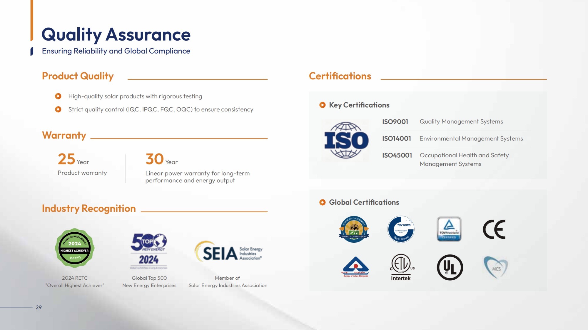 Gstar Solar is a cutting-edge high-tech enterprise that operates across the entire value chain of the solar panel industry, from producing silicon ingots and wafers to manufacturing solar cells, frames, and modules. Our expertise spans research, production, sales, and engineering technical services. Since our inception, we have adhered to a steadfast commitment to pursuing excellent quality and building a reliable brand in the photovoltaic (PV) industry. Our products undergo rigorous inspections by authoritative bodies and have garnered international recognition from entities such as ETL, TUV, and the California CEC.