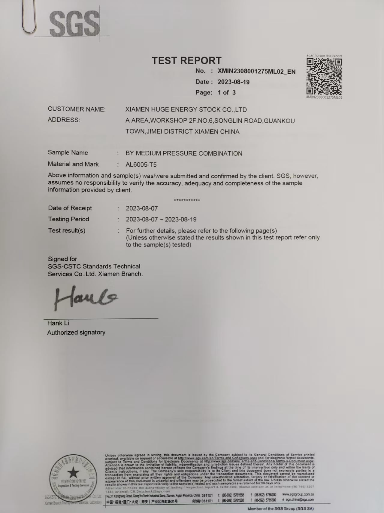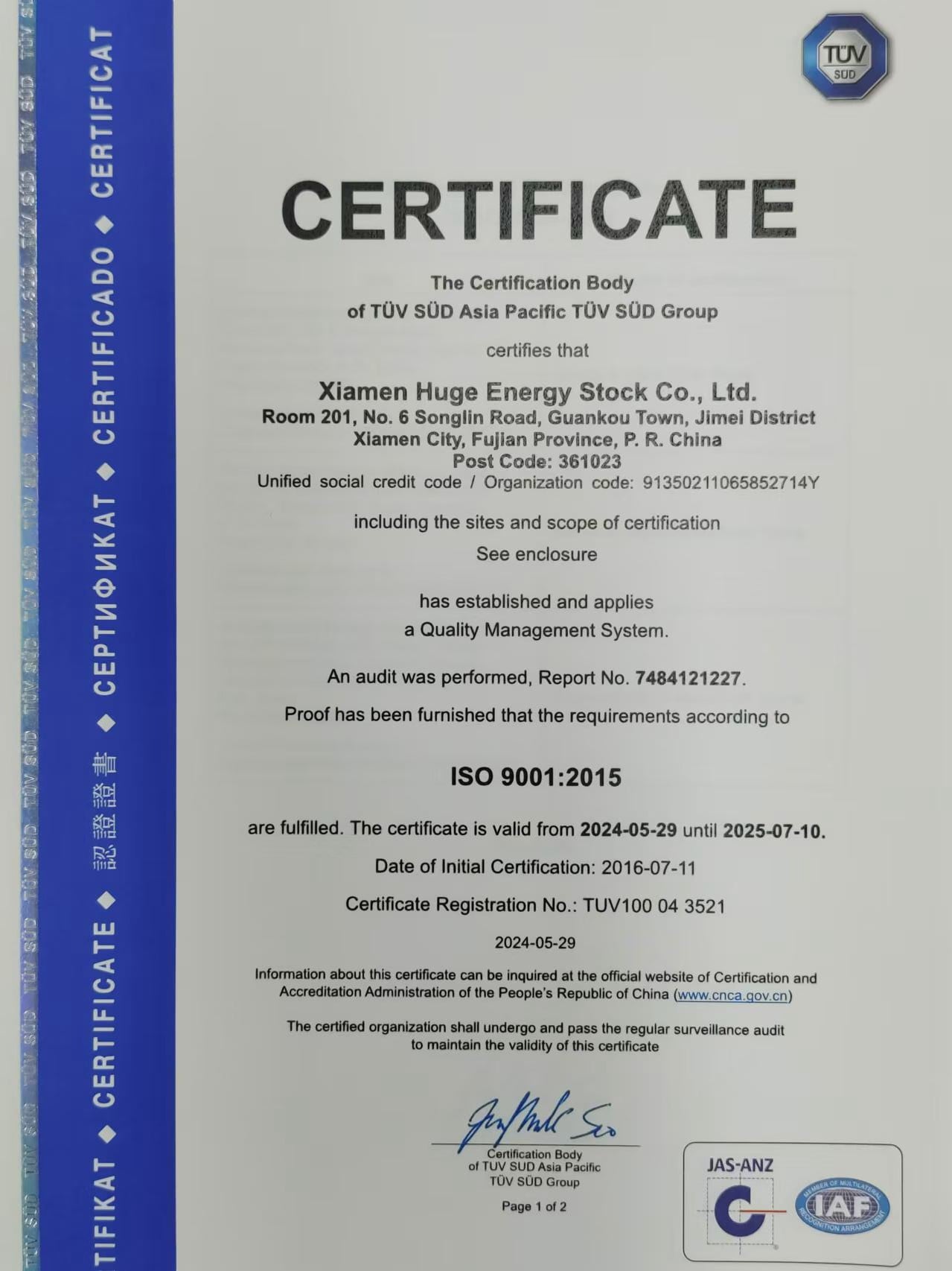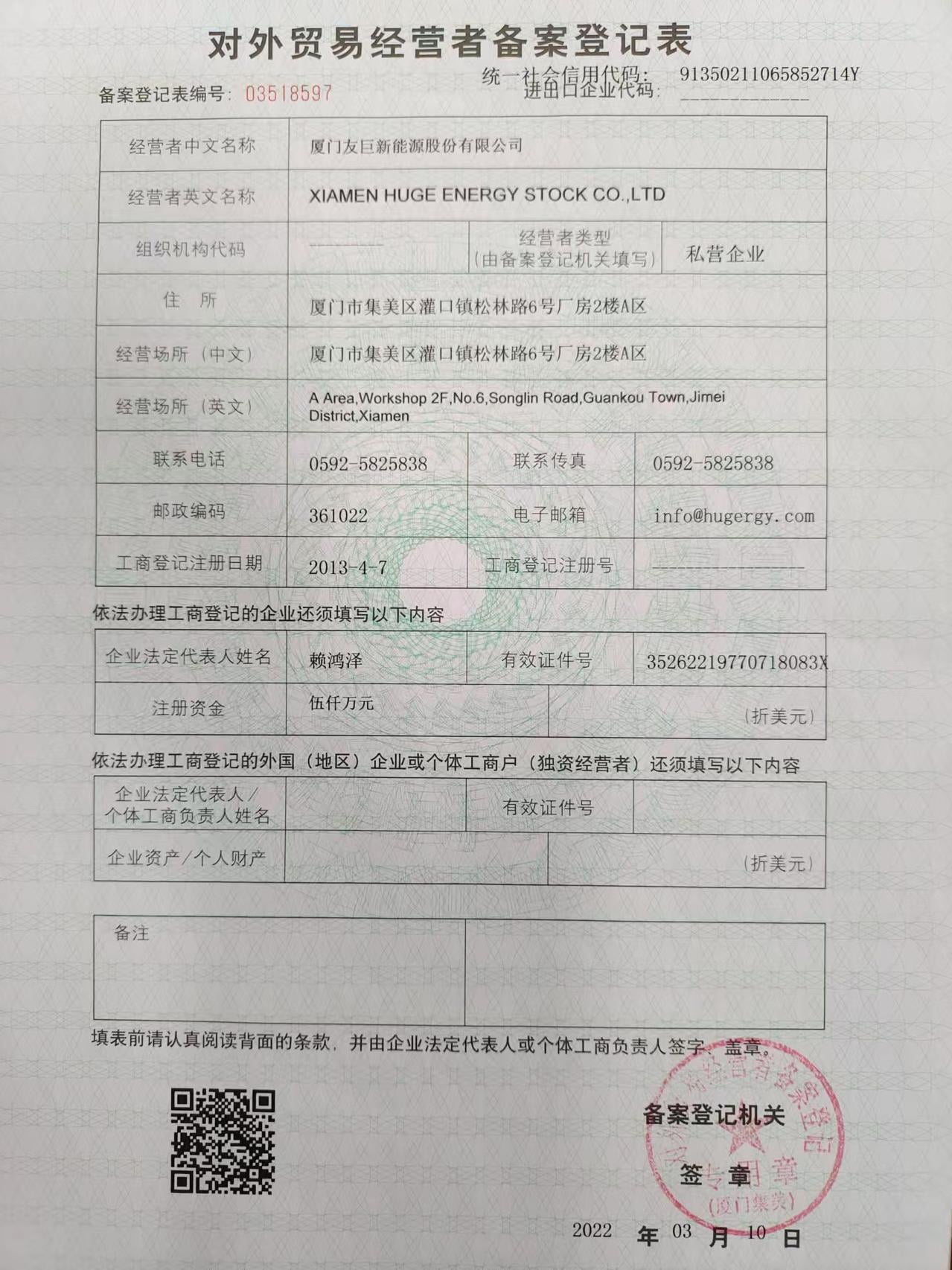 Xiamen Huge Energy Stock Co., Ltd.