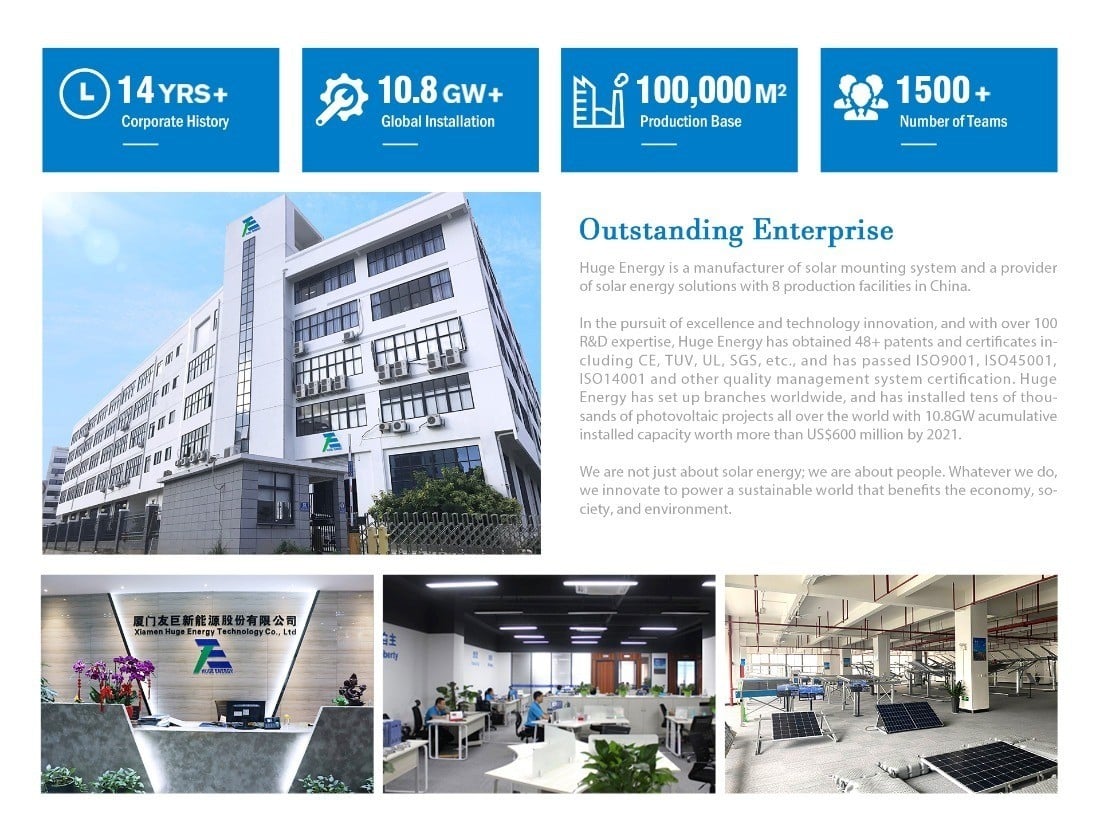 Huge Energy is a manufacturer of solar mounting systems and a provider of solar energy solutions with 8 production facilities in China.