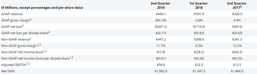 For FY 2018, the company now expects Adjusted EBITDA to be in the range of $95 million to $125 million compared to its previous guidance of $75 million to $125 million. Additionally, as a result of the asset impairment charge in the second quarter of 2018, the company expects its FY 2018 GAAP net loss to be in the range of $830 million to $860 million. The balance of the company's FY 2018 non-GAAP guidance remains unchanged.