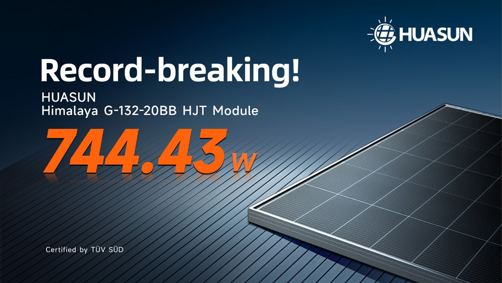Certified by TÜV SÜD, the power of Huasun Himalaya G12-132 HJT solar module has reached 744.43W, with a conversion efficiency of 23.96%, Huasun once again sets a new record in the power and efficiency of HJT photovoltaic modules. Committed to the innovation and industrialization of heterojunction solar technology, Huasun has repeatedly achieved record-high efficiency and power of its HJT cells and modules since its establishment, and further proving the great potential of HJT products to improve the performance of solar systems.