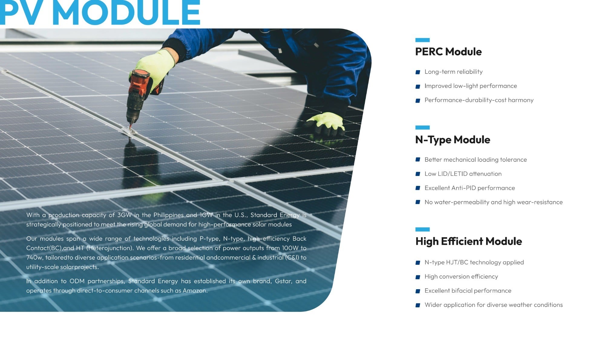 Standard Energy, founded in 2019 and headquartered in Singapore, is committed to being a trusted global new energy solution provider. With a focus on both PV material manufacturing and PV system services, Standard Energy aims to develop sustainable clean energy ecosystems worldwide.