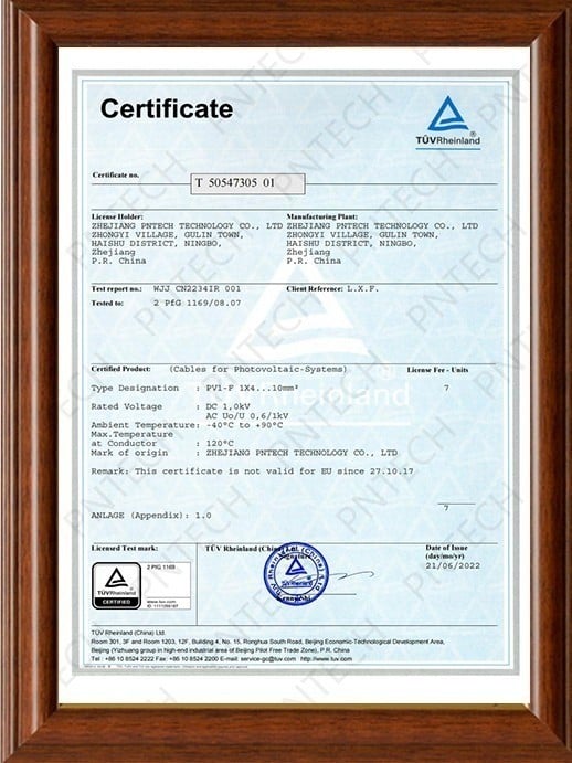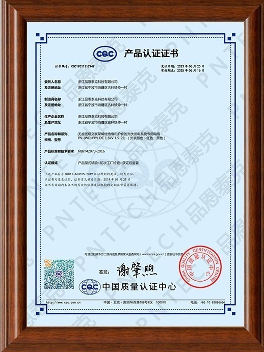 近年来,品恩作为一家专注于于太阳能光伏发电领域的专业厂家,积极响应国家十四五规划倡导的“低碳经济,绿色能源”的号召。品恩先后荣获国家高新技术企业、科技创新委员会成员、浙江省“创业之星”、浙江省“专精特新”培育企业等称号,并通过了ISO9001 生产管理认证、ISO14001 环境管理体系认证、欧盟CE 认证、TÜV-IEC 62852 认证、TÜV 认证、越南Quatest 3 认证、中国质量CQC 认证及欧盟CPR 认证等国内外权威认证。拥有6 条自动化生产线、15台注塑机,光伏电缆月生产能力达20000 千米,光伏连接器月生产能力达200万套。产品远销欧洲、东南亚、中东、澳洲、南美洲等几十个国家及地区。