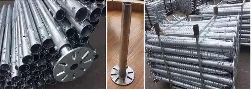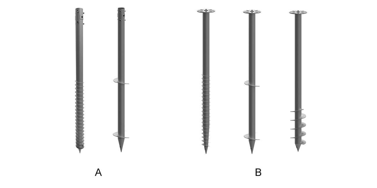 Type B is a kind of ground screw that features a flange plate, which joints with the pipe tightly for easy connection with the post. The holes on the flange plate also help to make sure the ground screw grabs the earth firmly by bolts. It plays an essential role in timber construction, docking stations, etc.