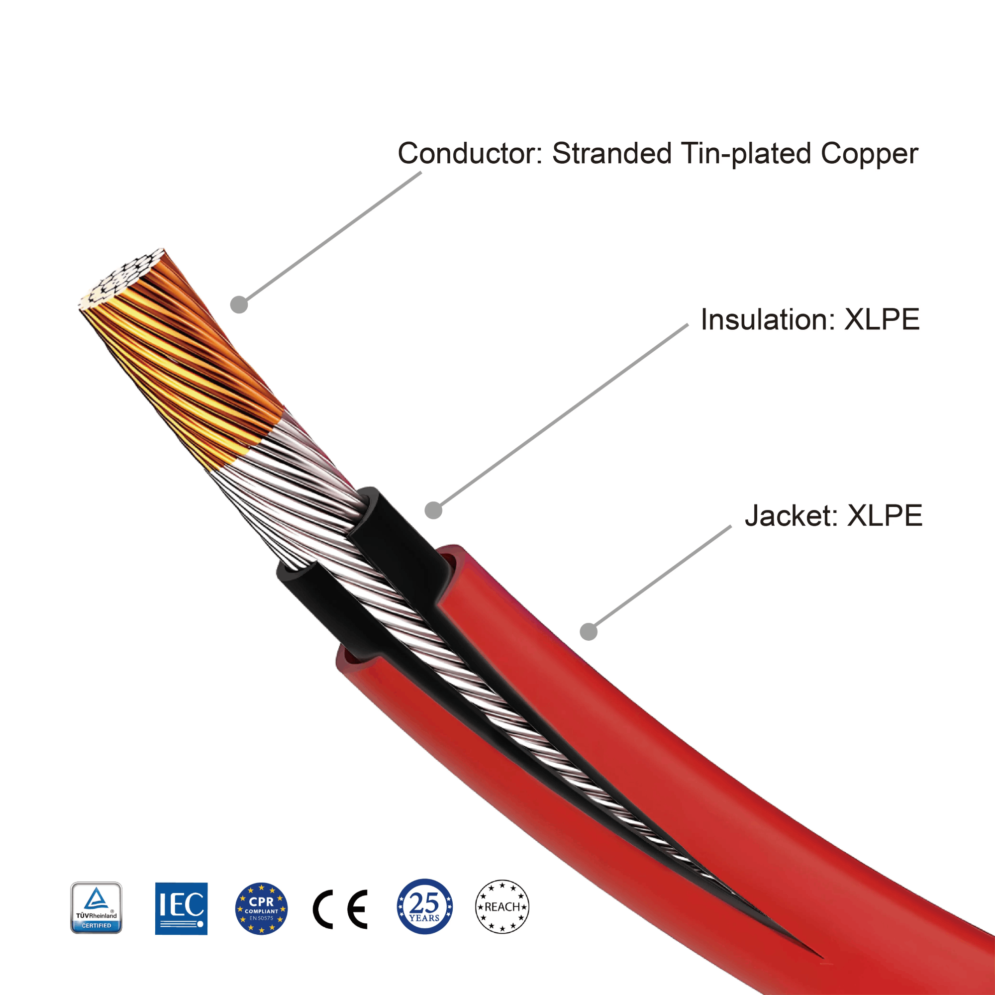 • Halogen Free, Flame Retardant, Low Smoke Emission.25 years of lifetime expectancy.