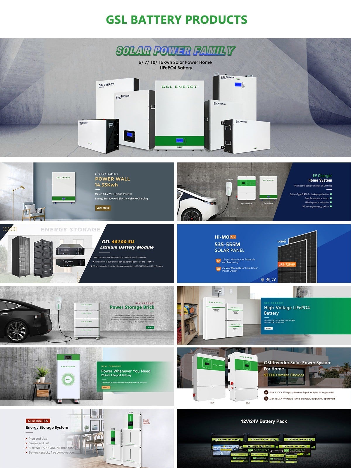 As a factory with 15 years of experience in manufacturing energy storage batteries, GSL ENERGY's products cover industrial, commercial and household energy storage, including Large Storage Batteries, Power Storage Wall, Telecom Batteries, Power Storage Brick, High Voltage LiFePo4 Batter, Hybrid inverter, EV Charger, Portable Power Stations, etc., to meet all customer requirements. If you would like to inquire OEM&ODM or wholesale price, please don't hesitate to contact us for the best solar battery energy storage solution!