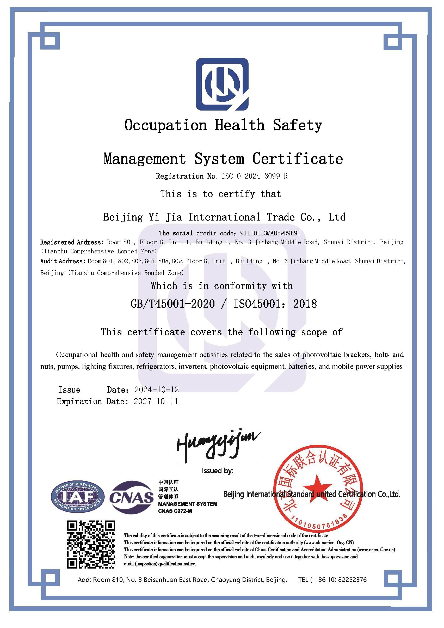 北京钇嘉国际贸易有限公司作为河北傲强金属制品集团全资子公司,成立于 2023 年,注册资本 1000 万元,专注于新能源金属制品的全球化贸易服务。依托母公司 10 余年行业积淀,公司深度整合集团光伏支架、抗震支架、储能设备等全产业链资源,年产能超 10GW,拥有 17 项专利技术(含国际 PCT 专利),产品通过 、SGS、CE 等国际认证,服务覆盖东南亚、中东、欧洲等 50 + 国家和地区。