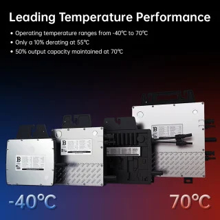 Operate confidently in extreme temperatures with the industry’s best range (-40°C to 70°C), minimal derating (10% at 55°C), and 50% output even at 70°C.