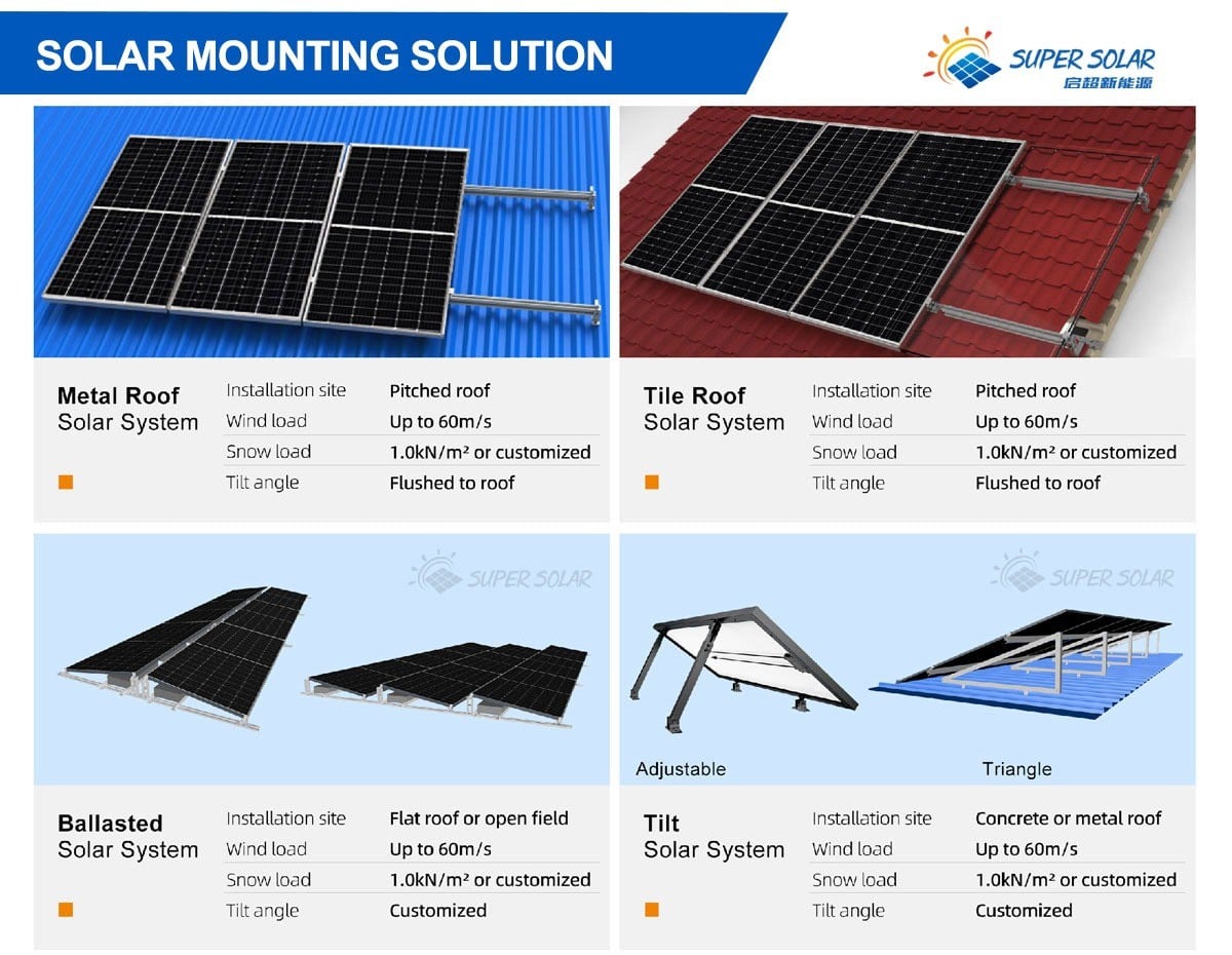 Types: Ballasted or fixed tilt