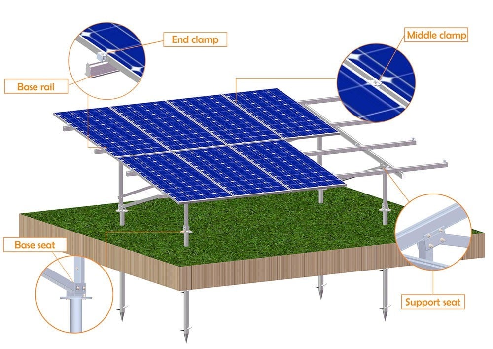 3. Grounding screws, expansion bolts, and concrete can be used for the bracket foundation.