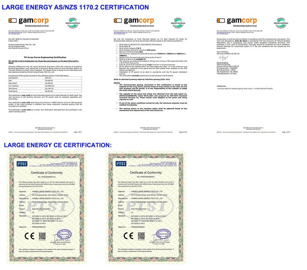 Xiamen Large Energy Tech Co., Ltd, was founded in 2009,which is located in the Xiamen China, As a collection of renewable energy investment and solar mounting production,solar power station service. Our factory is equipped with advanced fully automated production line.For many years manufacture and management experience,we have passed ISO90001,SGS,CE,AS/NZS 1170.2 certificates.