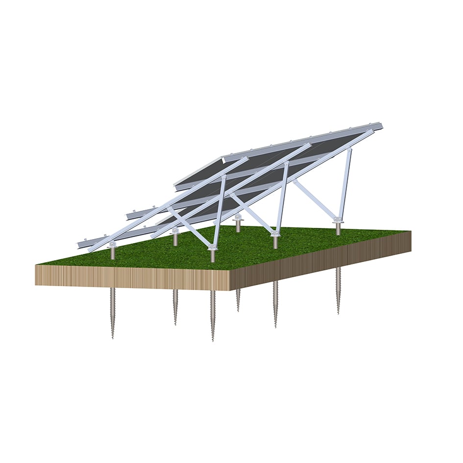 This solar mounting system was specially designed for use in photovoltaic systems in open areas. Framed and unframed modules can be arranged in various configurations. Ground screw and concrete foundation are available.