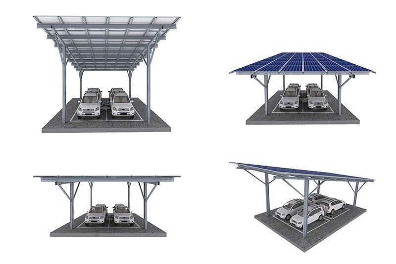 Soeasy MSC solar carport mounting is made of high-quality aluminum alloy and stainless steel, which is stable and firm. The inverted triangular structure enhances the flexibility of parking. Factory pre-assembled to reduce construction errors and save labor costs.