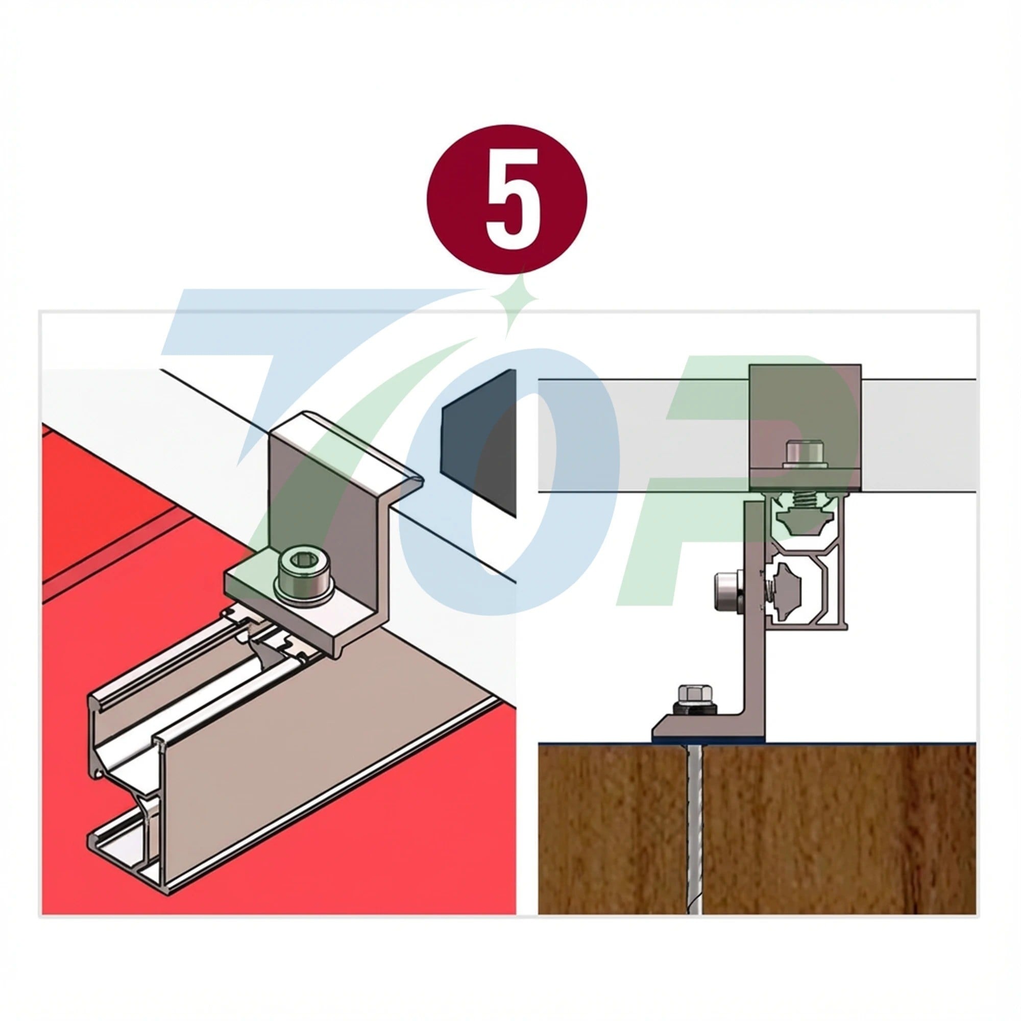 High-strength AL6005-T5 solar racking solution for metal roofs. Features pre-assembled end clamps and adjustable L-feet for rapid installation. Designed to reduce labor costs by 40% with a slide-in nut system. Wind load tested up to 60m/s.