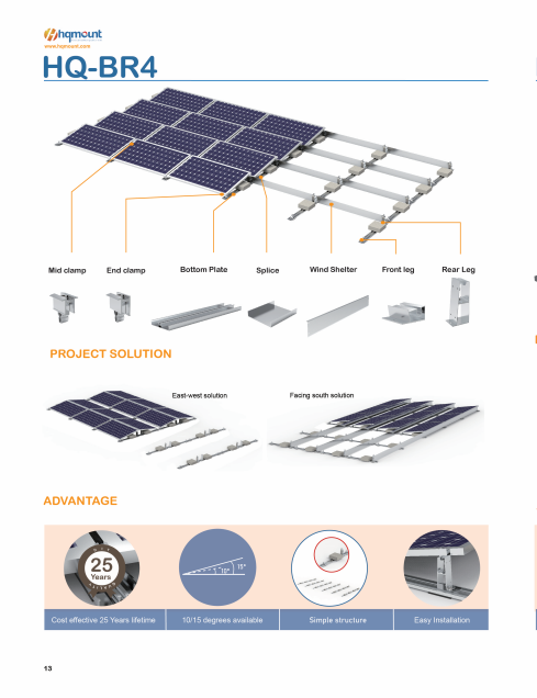 作为太阳能领域的参与者,HQ Mount不仅专业,而且能够更好地满足客户的需求。HQ Mount专注于创新,改进施工,减少安装时间。产品质保12年,HQ Mount的产品出厂前都经过严格的步骤,包括技术团队的刺激,精确的上拉测试,以及第三方测试,以确保产品的使用寿命。HQ Mount的设计和生产的第一规则是基于质量。
