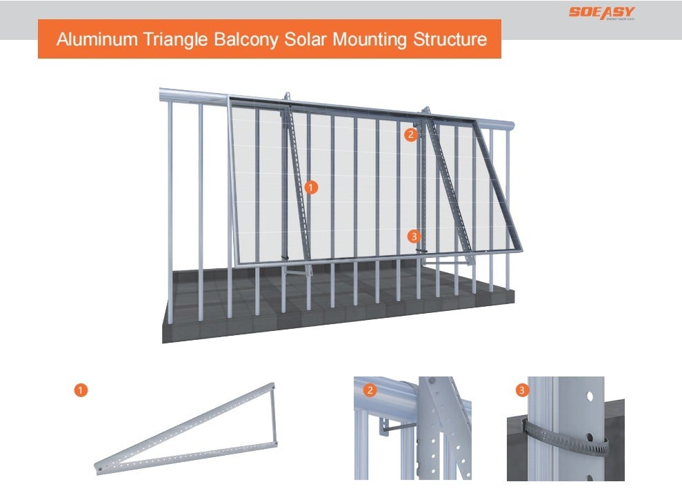 Aluminum triangle balcony solar mounting structure is used in a wider range of scenarios, and can be applied to the installation of photovoltaic systems in daily fenced balconies, courtyard walls, roofs and other installation scenarios. Compared with the traditional rooftop photovoltaic system, the triangle balcony solar mounting structure makes residential photovoltaic installation more possible. The stable and solid triangular structure allows more apartment owners or tenants to enjoy the convenient life brought by photovoltaics.
