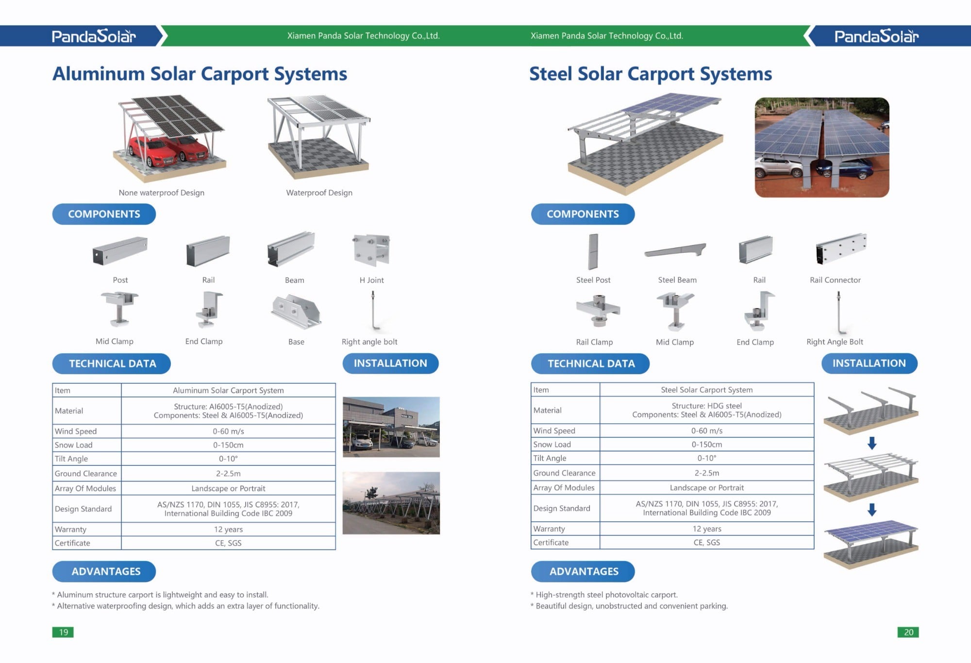 PandaSolar Aluminum Solar Carport Systems: