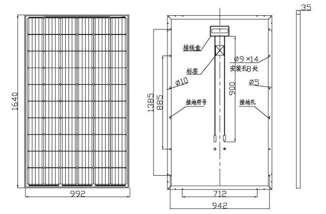 | 组件尺寸(高/宽/厚) | 1640x992x35 mm | ||||||