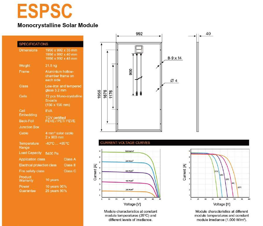| 组件尺寸(高/宽/厚) | 1956x992x40 mm | |||||