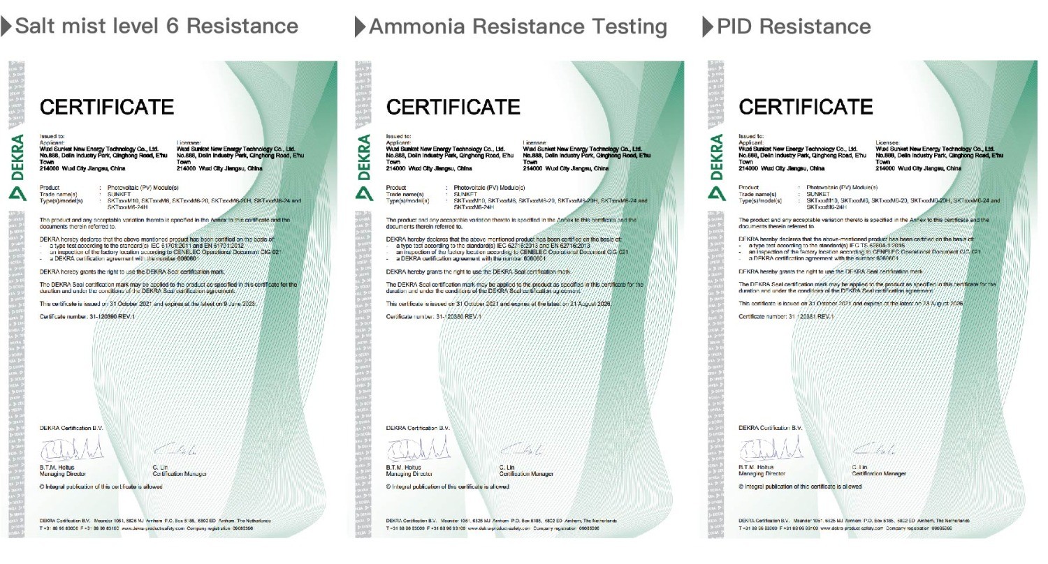 自成立以来,公司秉承做精准、优质产品的理念,不断开发精品光伏产品并向下游延伸,精心打造出“电池制造、组件封装、系统工程和能源产品应用”的完整垂直产业链。公司先后取得 ISO9001 质量管理体系认证、ISO14001 环境管理体系认证、ISO45001 职业健康安全体系认证,TUV、CE、IEC、CEC、INMETRO、RETIE、UKCA、MCS、JP-AC、DEWA 和 CQC 金太阳等多项国际和国内权威产品认证,且经过盐雾 6 级、 抗氨气及抗 PID 测试。产品远销欧洲、南美洲、东南亚、中东、非洲等一百多个国家和地区。公司还提供产品定制化服务,赢得全球客户的广泛赞誉。