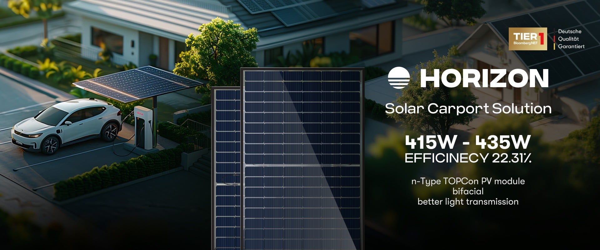 The Horizon carport module from AESOLAR features cutting-edge TOPCON cell technology, the latest innovation in PV modules. They feature glass on both sides, with an anti-reflective coating on the front and float glass on the back. These modules operate efficiently in temperatures from -40°C to 85°C, with a low temperature coefficient of -0.29% per °C.