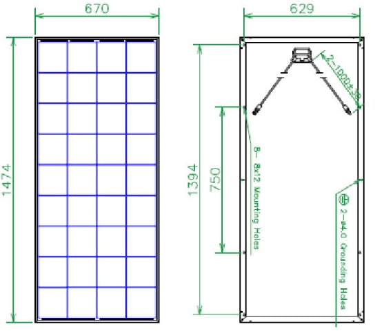 | 组件尺寸(高/宽/厚) | 1474x670x35 mm | ||||