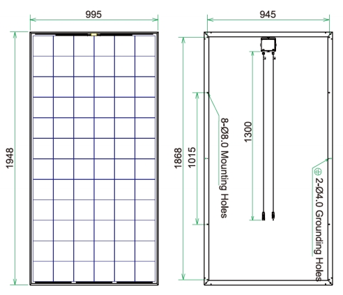 | 组件尺寸(高/宽/厚) | 1948x995x40 mm | |||||||