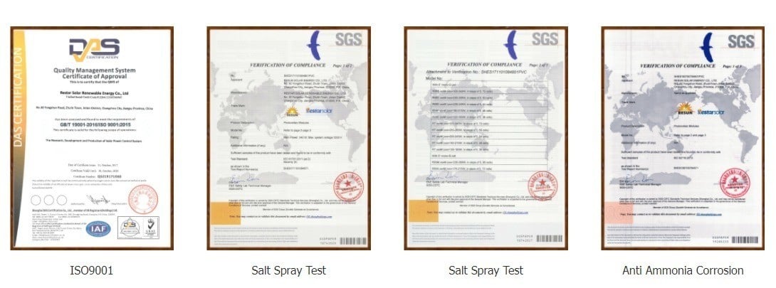 Resun Solar专门提供高质量和高成本效益的太阳能组件。凭借其2家通过ISO9001和14001认证的制造工厂,全系列Resun配线架通过TUV IEC61215、IEC61730、IEC61701、CEC、EMC、LVD、CE认证,并由PI Berlin lab批准免PID,由美国CHUBB保险集团投保。 Resun Solar成立于2005年,拥有1GW的生产能力,在基于MW的中大型地面项目和基于KW的小型独立屋顶系统方面拥有丰富的经验,并且Resun Solar作为世界银行太阳能项目的合格太阳能家庭系统供应商拥有超过15年的经验,这些项目分布在大多数欧洲国家、澳大利亚、加拿大、南美、非洲、中东和亚洲。 Resun solar坚持其方便客户和与不同太阳能系统组件合作伙伴建立良好关系的双赢合作目标,建立了一个行业联盟,提供太阳能发电系统集成解决方案和太阳能应用产品。
