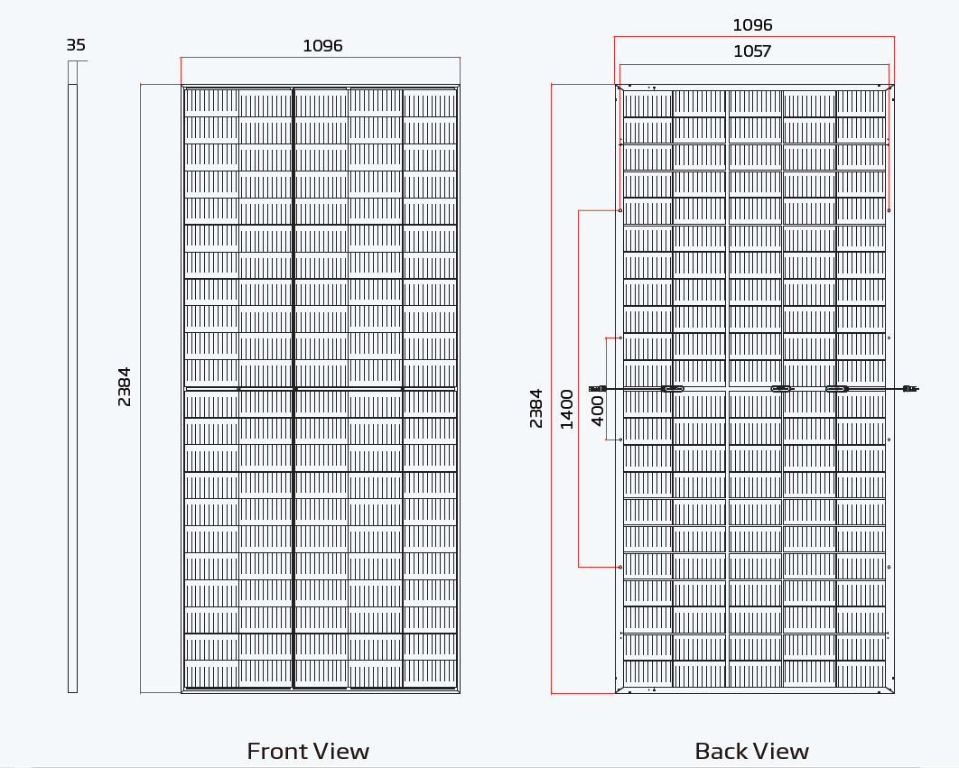 | 组件尺寸(高/宽/厚) | 2384x1096x30 mm | ||||||