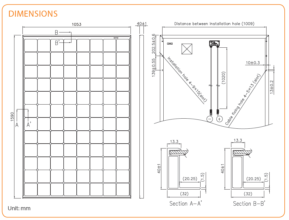 | 组件尺寸(高/宽/厚) | 1590x1053x40 mm | ||