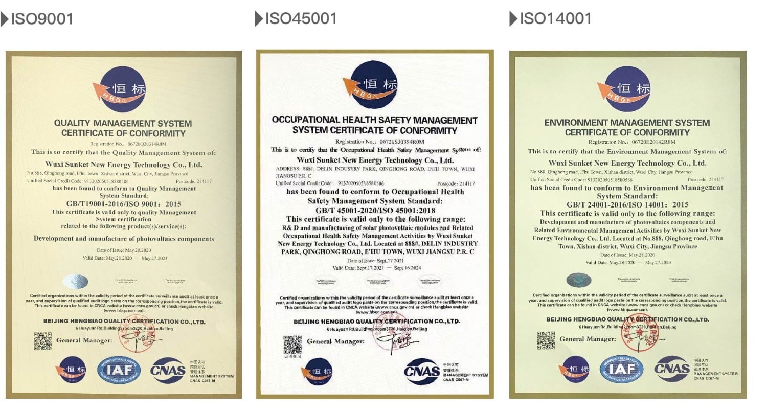 自成立以来,公司秉承做精准、优质产品的理念,不断开发精品光伏产品并向下游延伸,精心打造出“电池制造、组件封装、系统工程和能源产品应用”的完整垂直产业链。公司先后取得 ISO9001 质量管理体系认证、ISO14001 环境管理体系认证、ISO45001 职业健康安全体系认证,TUV、CE、IEC、CEC、INMETRO、RETIE、UKCA、MCS、JP-AC、DEWA 和 CQC 金太阳等多项国际和国内权威产品认证,且经过盐雾 6 级、 抗氨气及抗 PID 测试。产品远销欧洲、南美洲、东南亚、中东、非洲等一百多个国家和地区。公司还提供产品定制化服务,赢得全球客户的广泛赞誉。