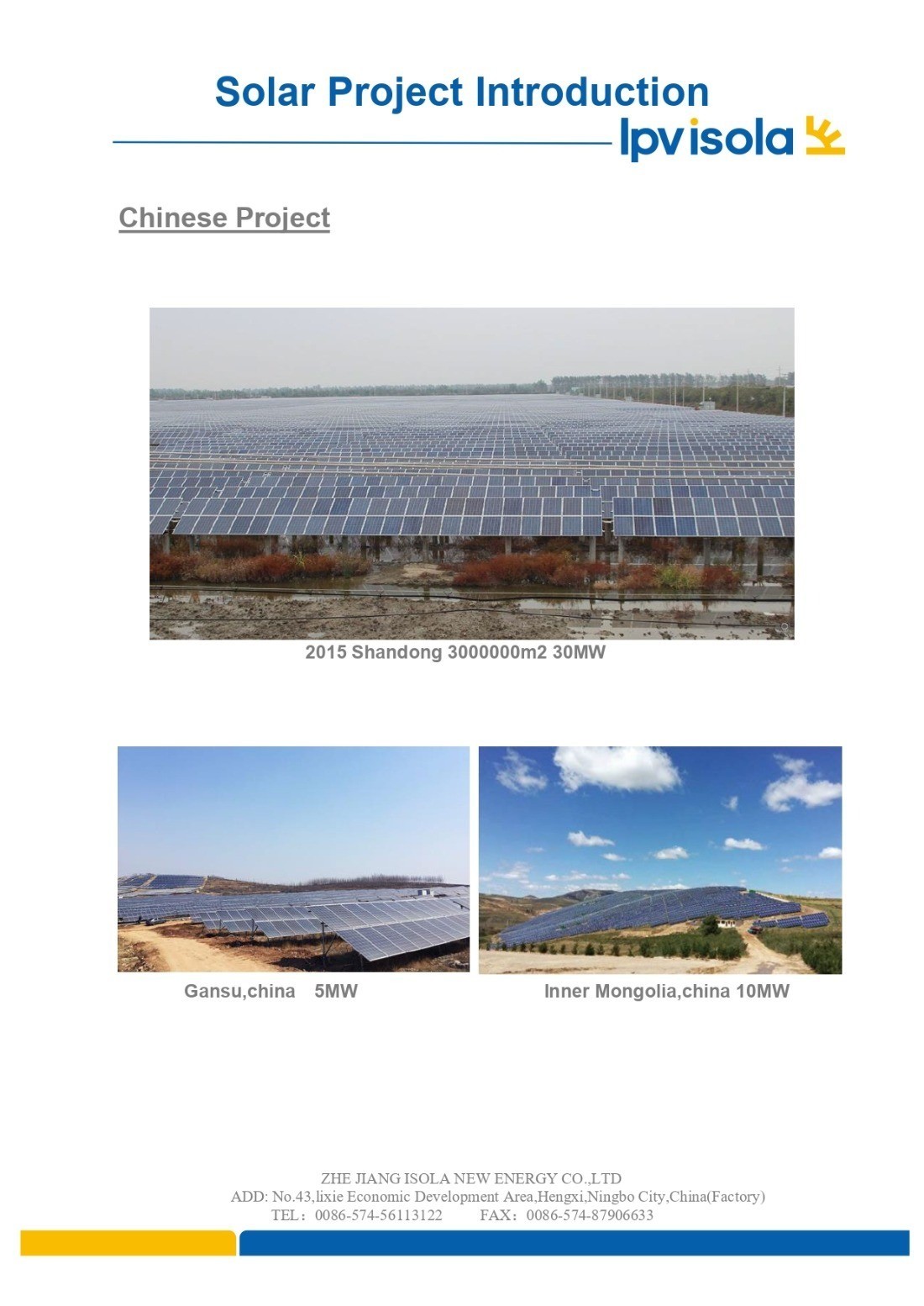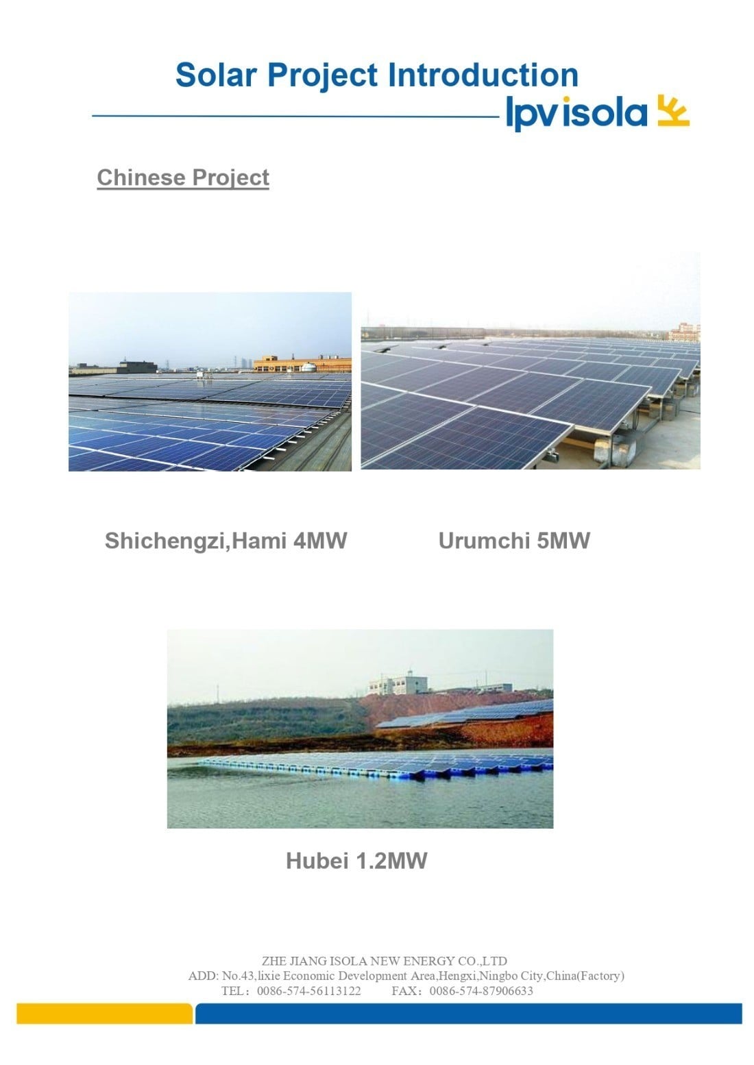 Zhejiang Isola New Energy Co.,Ltd is a professional manufacturer, engaged in high-tech products of solar modules. It has the abundant technical force and a large number of professional and technical person for many years experienced in the photovoltaic industry, and use full-automatic machine for cell cutting, welding, packaging, testing and so on.