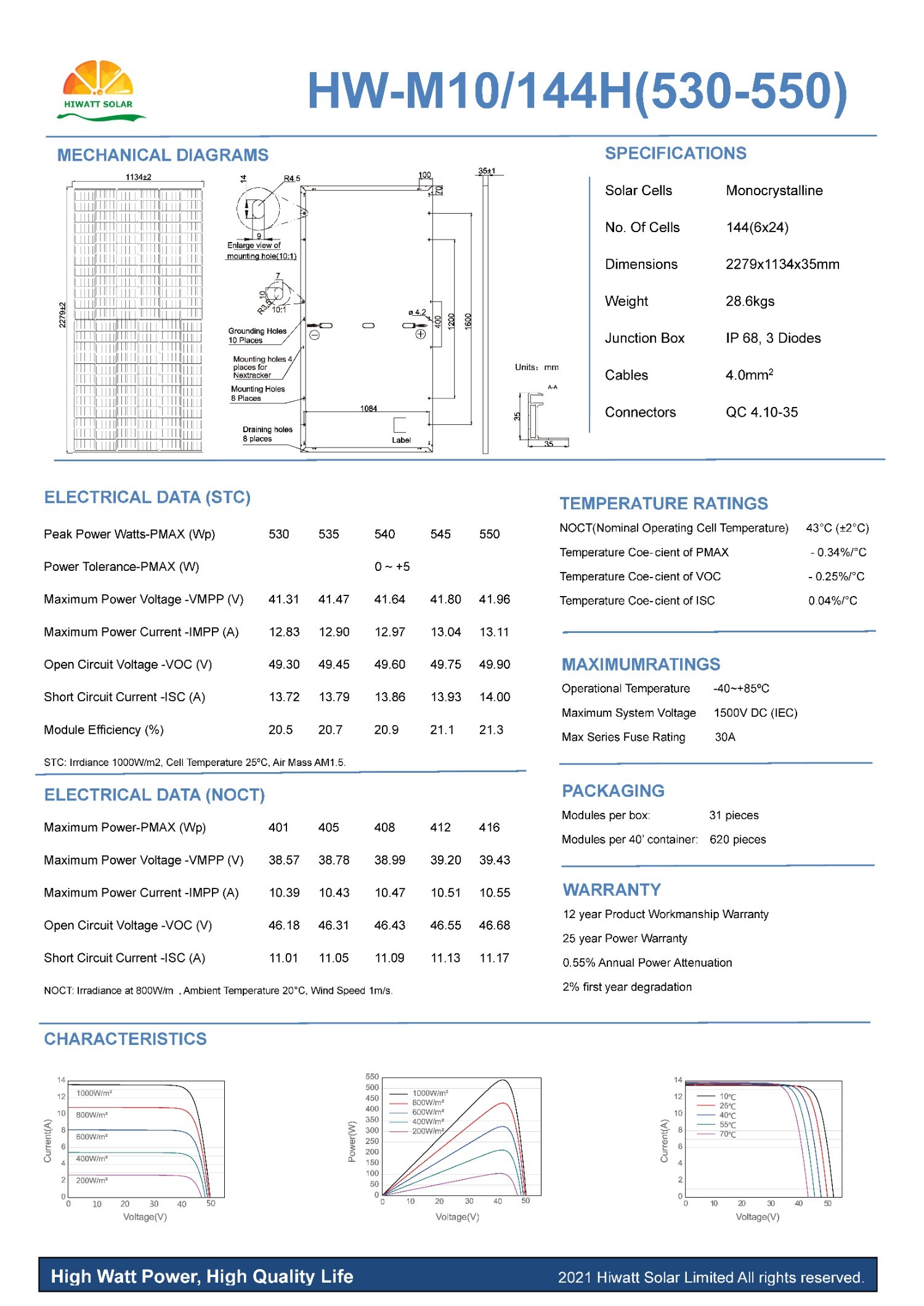 Hiwatt Solar is a technology company specializing in the research , development, production and sales of solar photovoltaic modules. Hiwatt Solar is a world leading solar module manufacturer and comprehensive solar solution provider.Our solar modules production capacity reaches 2.2GW . We have our own fully automated production line which ensures the quality is strict and stable.we can produce market mainstream solar modules ,including large size 210mm cell solar module power up to 750W plus, MBB, high efficient single glass and double glass bifacial modules, both mono and poly, full cells and half cut cells solar modules.