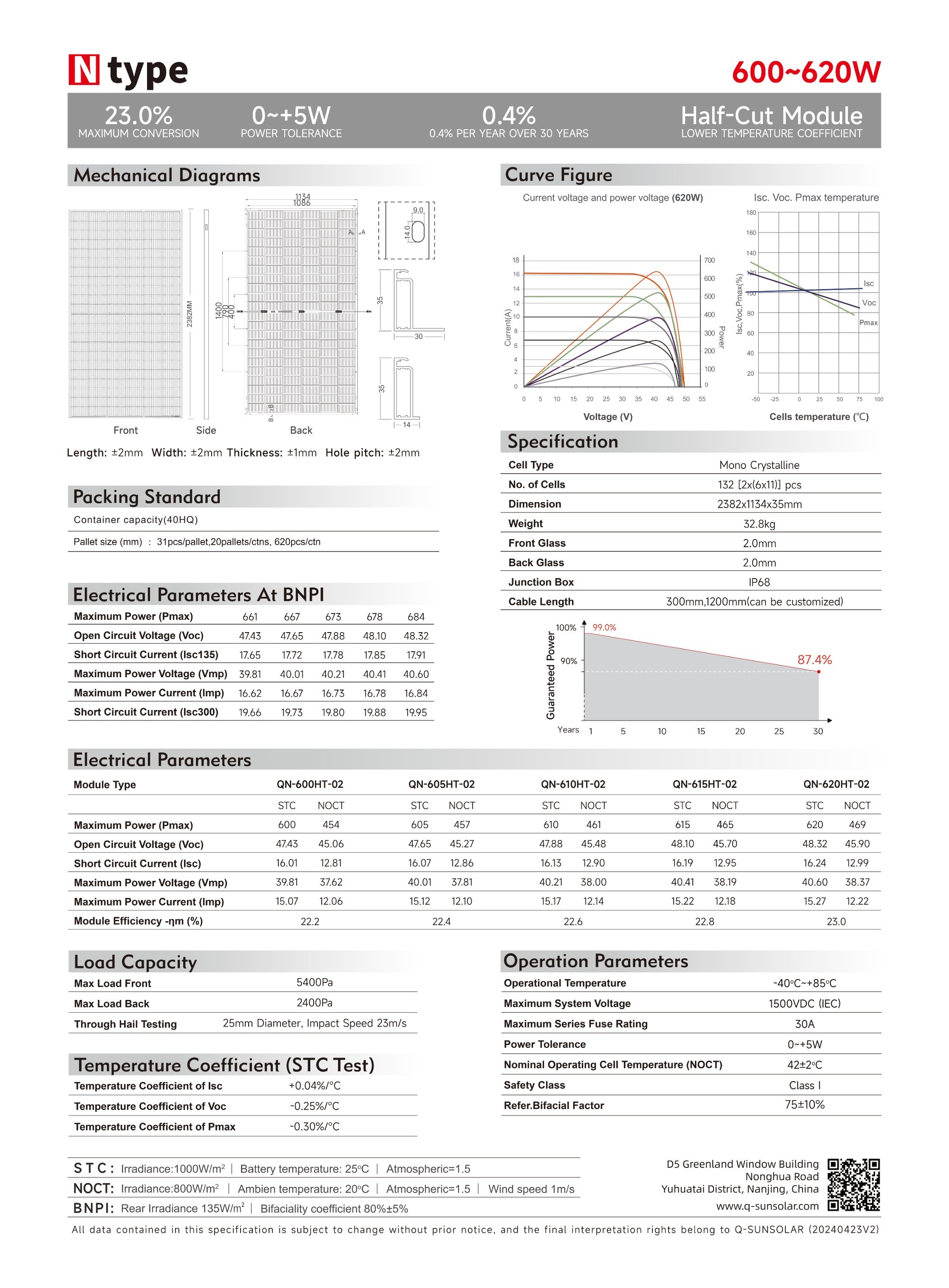 | 温度系数(Voc) | -0.289 %/°C | |||||