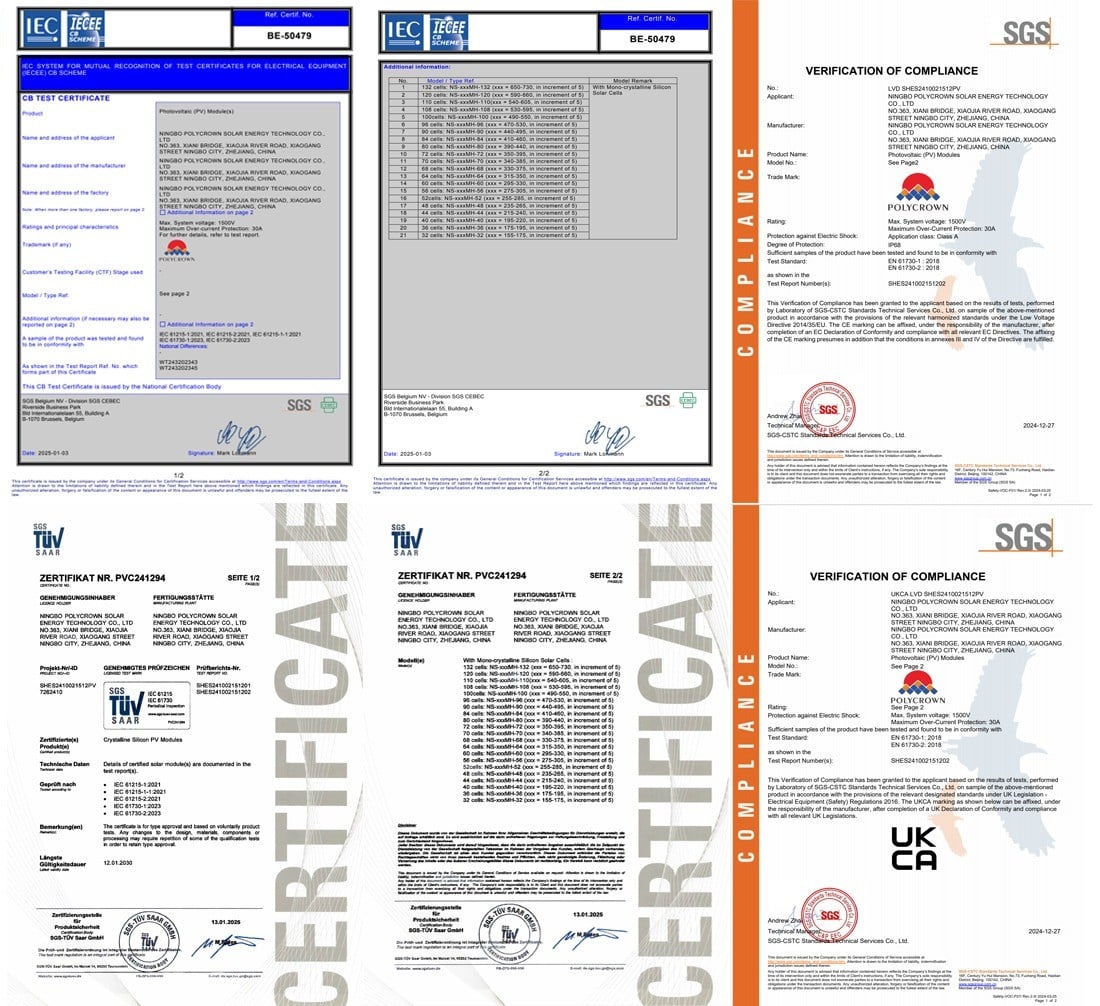 TUV, ISO9001,ISO14001,IEC61215,IEC61730