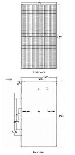 | 组件尺寸(高/宽/厚) | 2384x1303x35 mm | |||