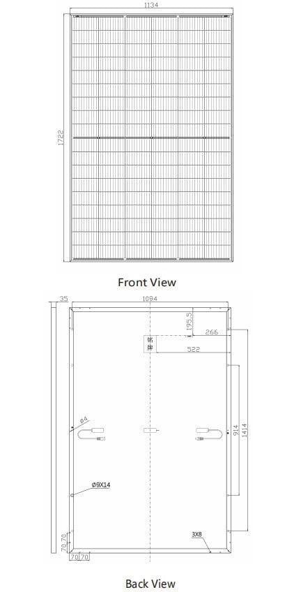 | 组件尺寸(高/宽/厚) | 1722x1134x35 mm | ||||