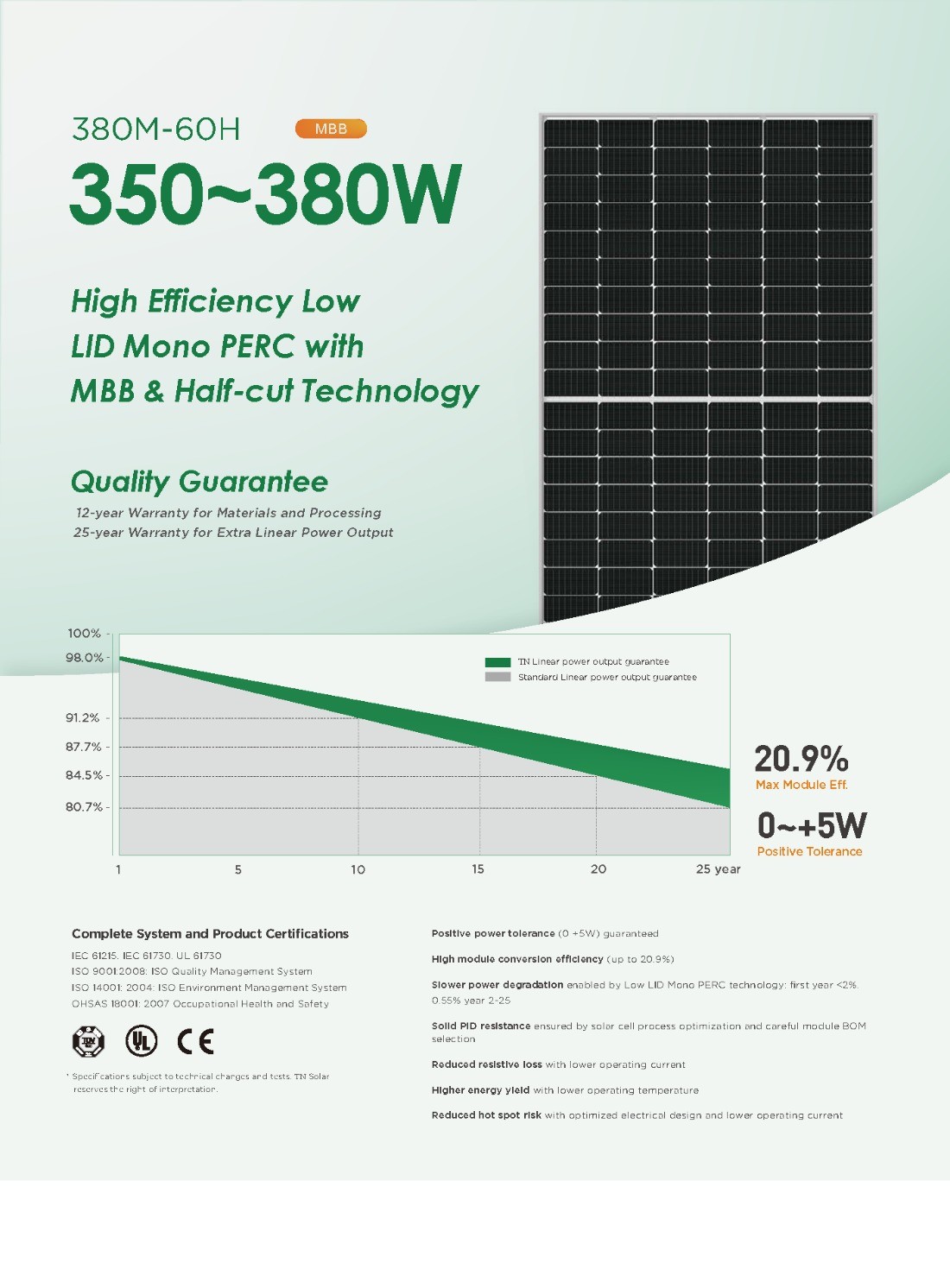 | 功率输出保证 | 84.5 % 25年年限质保 | |||||||