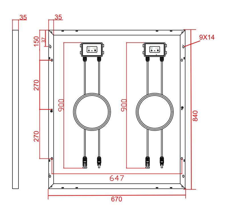| 组件尺寸(高/宽/厚) | 840x670x35 mm | ||