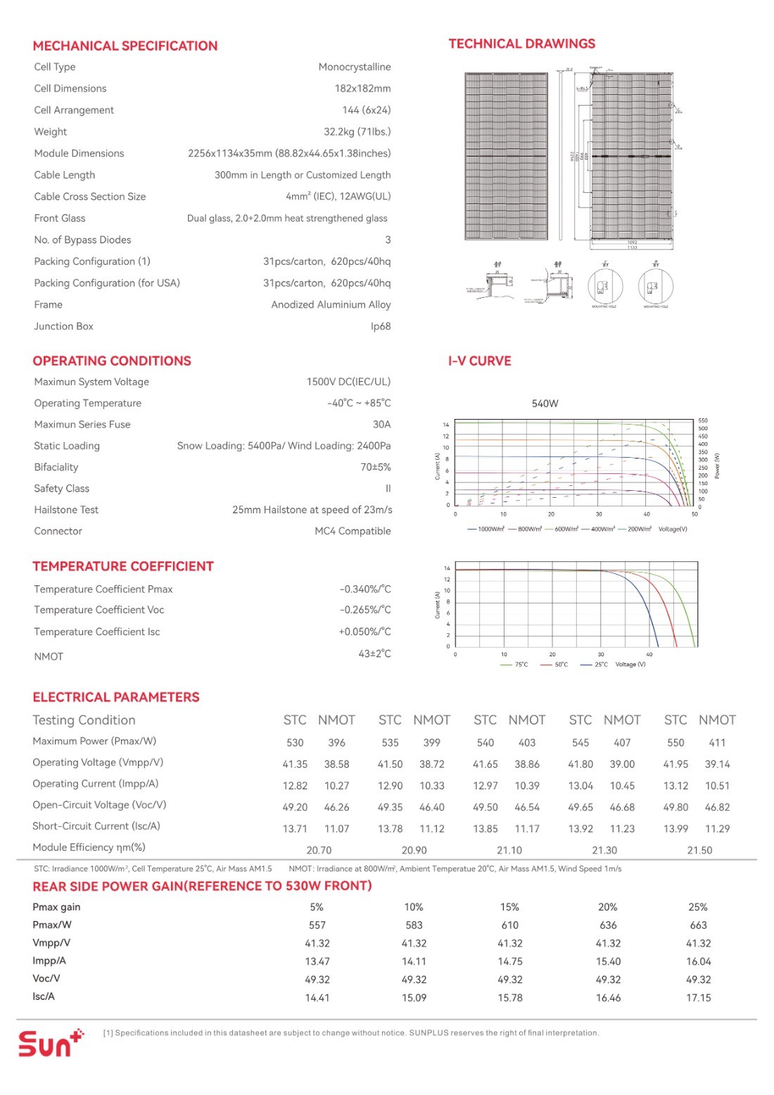 | 温度系数(Pmax) | -0.340 %/°C | ||