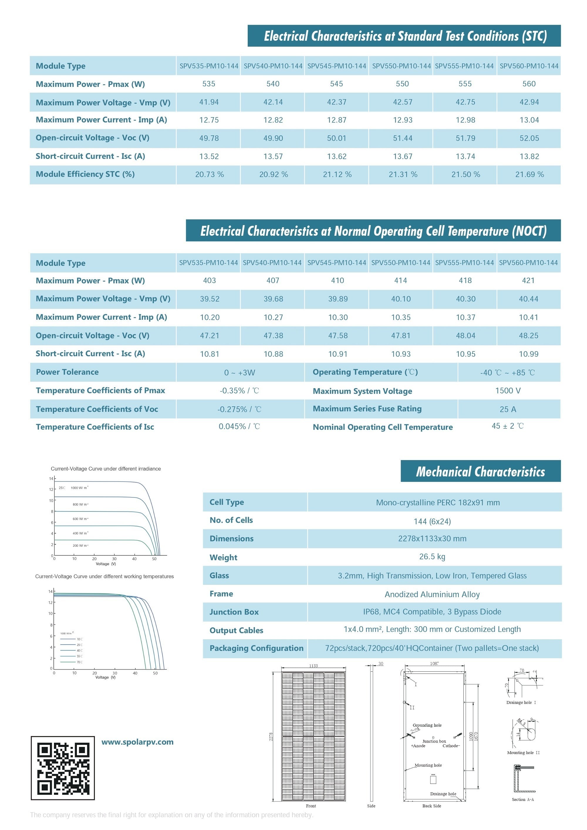 | 温度系数(Isc) | 0.045 %/°C | ||||||