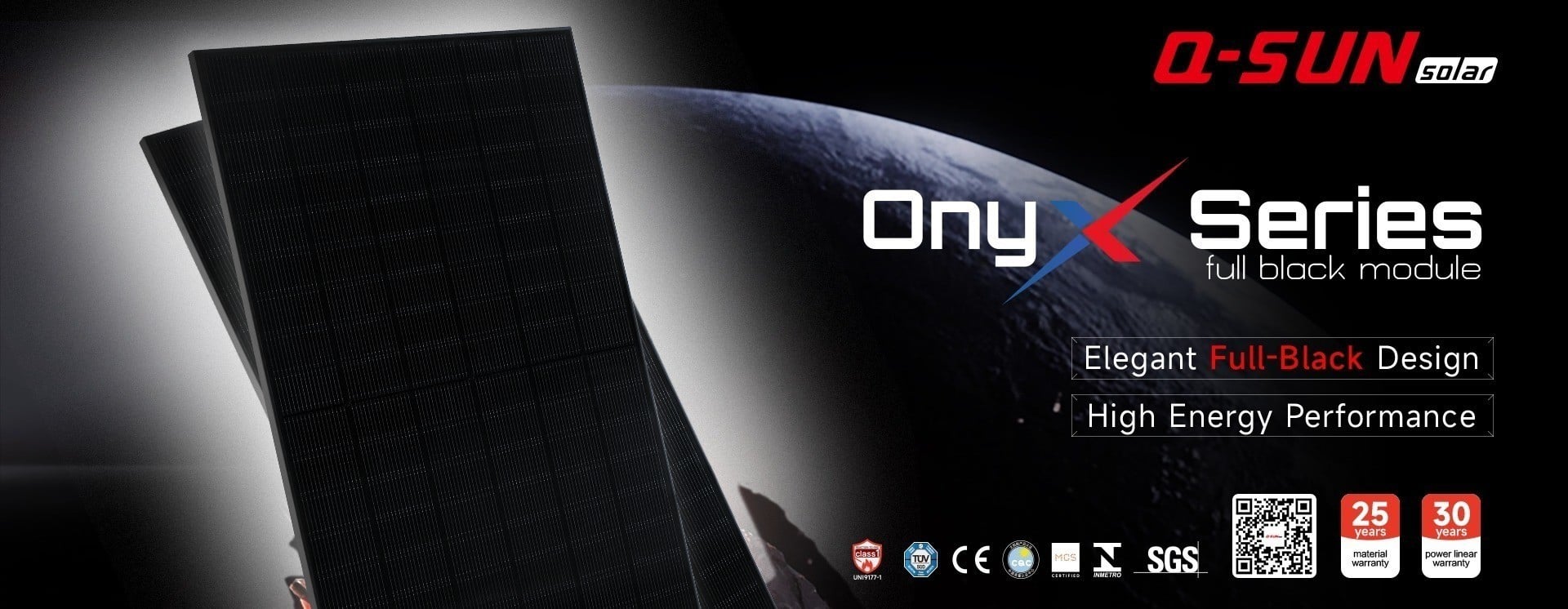The Q-Sun Solar Onyx Series is renowned for its full-black panels and modern design, specifically crafted for residential photovoltaic markets with high aesthetic and performance demands.