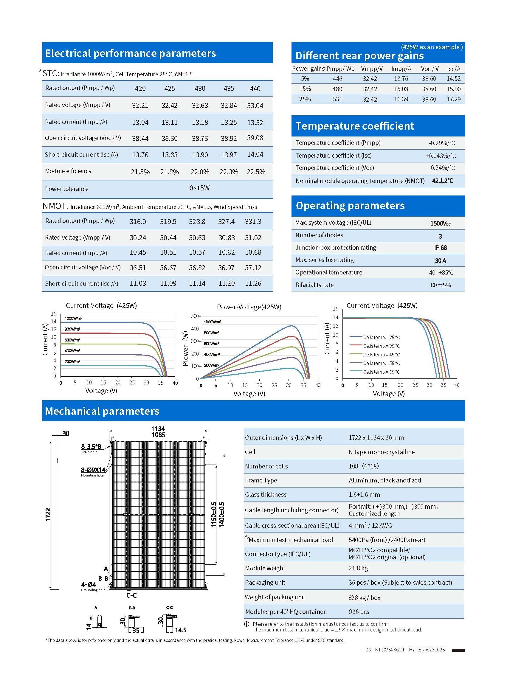 | 温度系数(Voc) | -0.26 %/°C | ||||