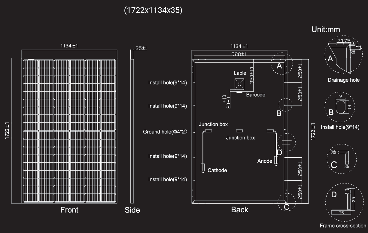 | 组件尺寸(高/宽/厚) | 1722x1134x35 mm | |