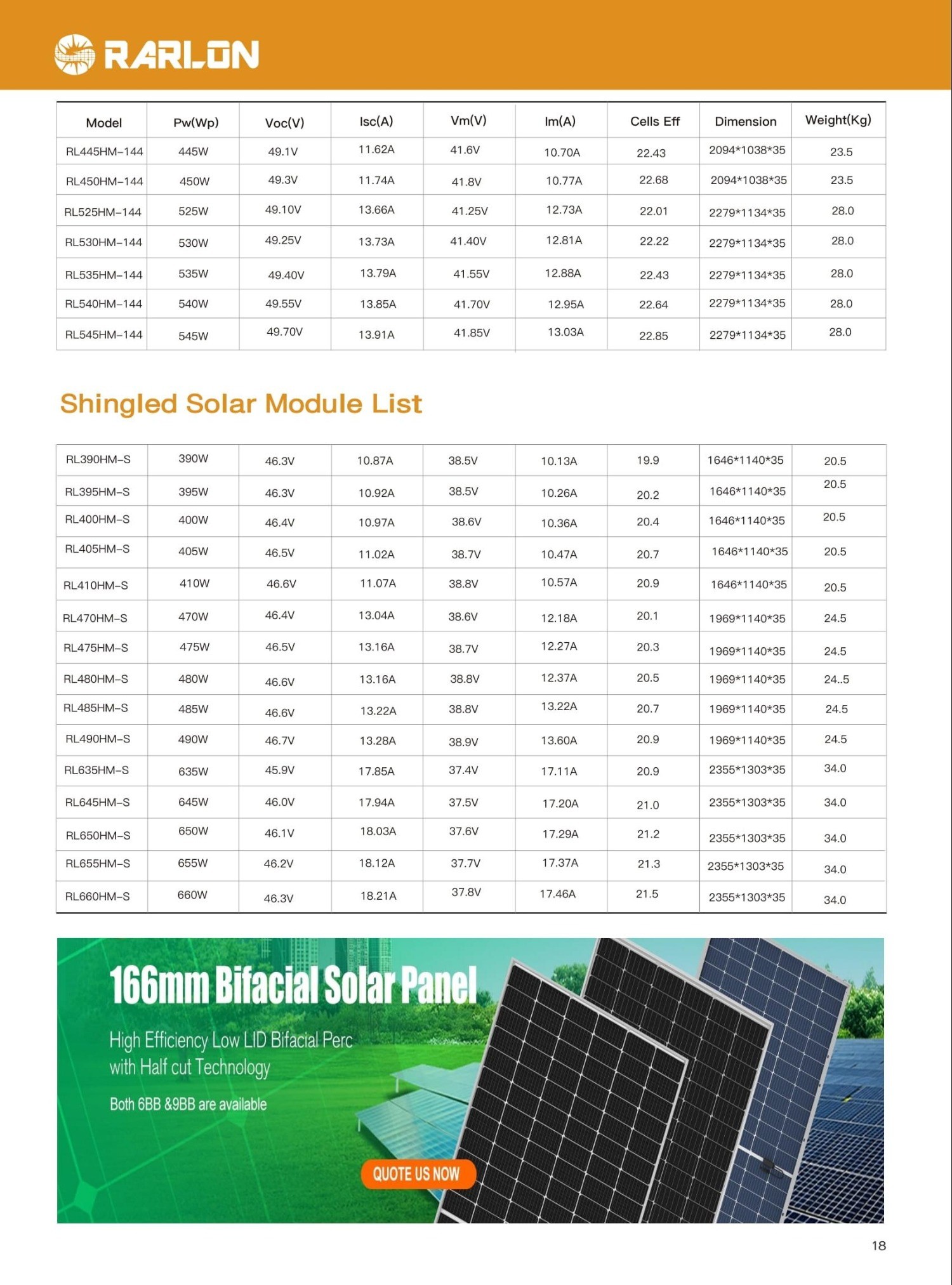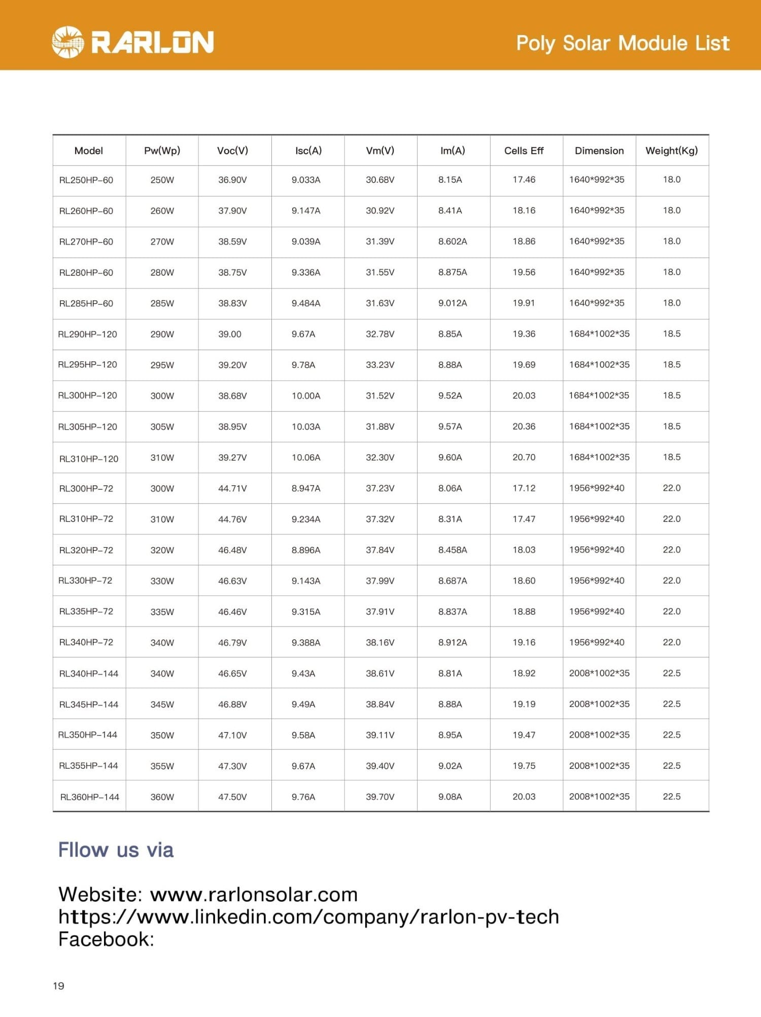 Rarlon PV TECH has specialized in solar field more than 10 years. Rarlon Solar is a professional manufacturer and supplier of green energy products. We engage production and installation of solar products, including solar panels, solar systems and solar projects.