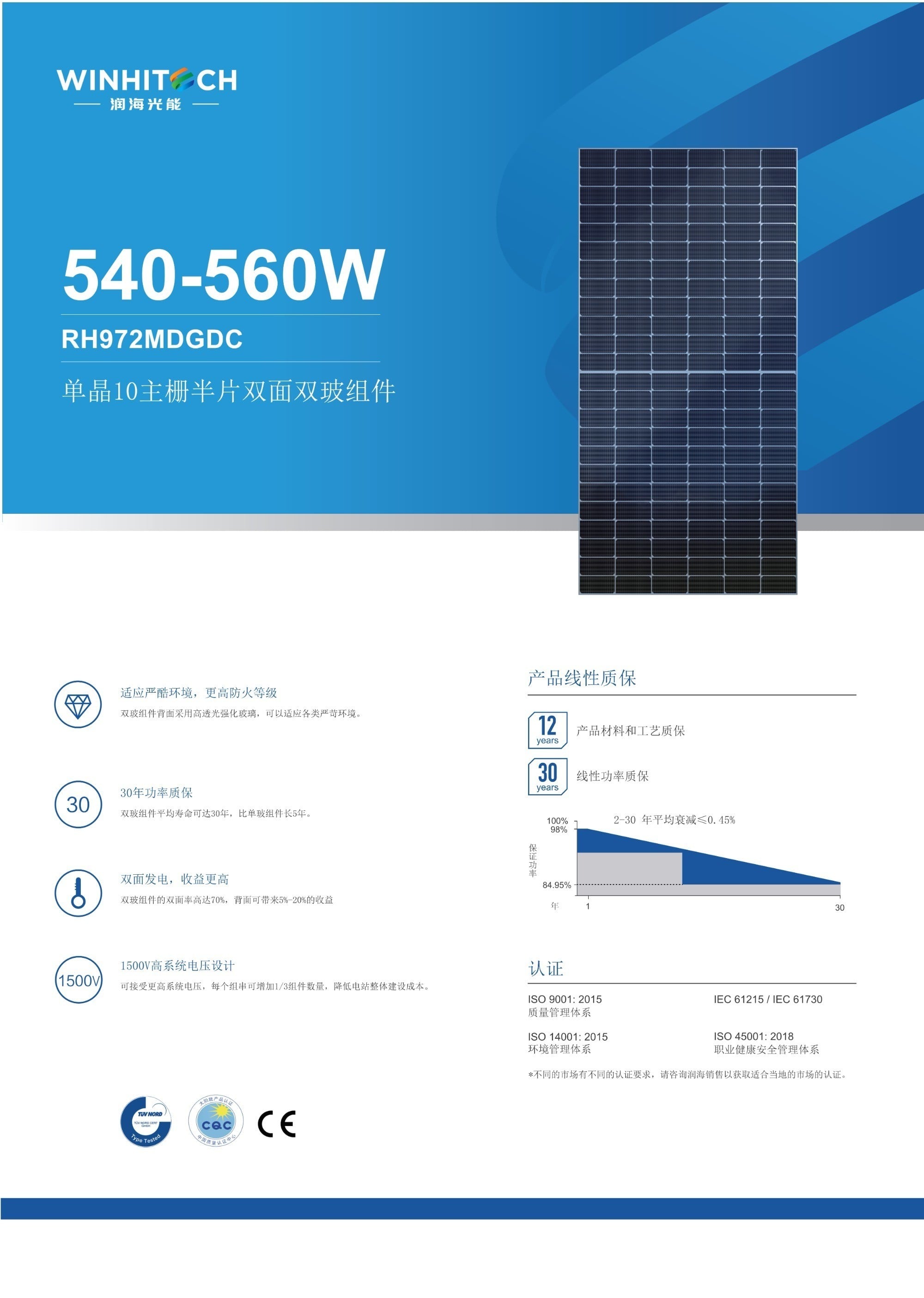 The dual-glass module has a bifacially of up to 80% and a power generation gain of 7%-25% on the backside.
