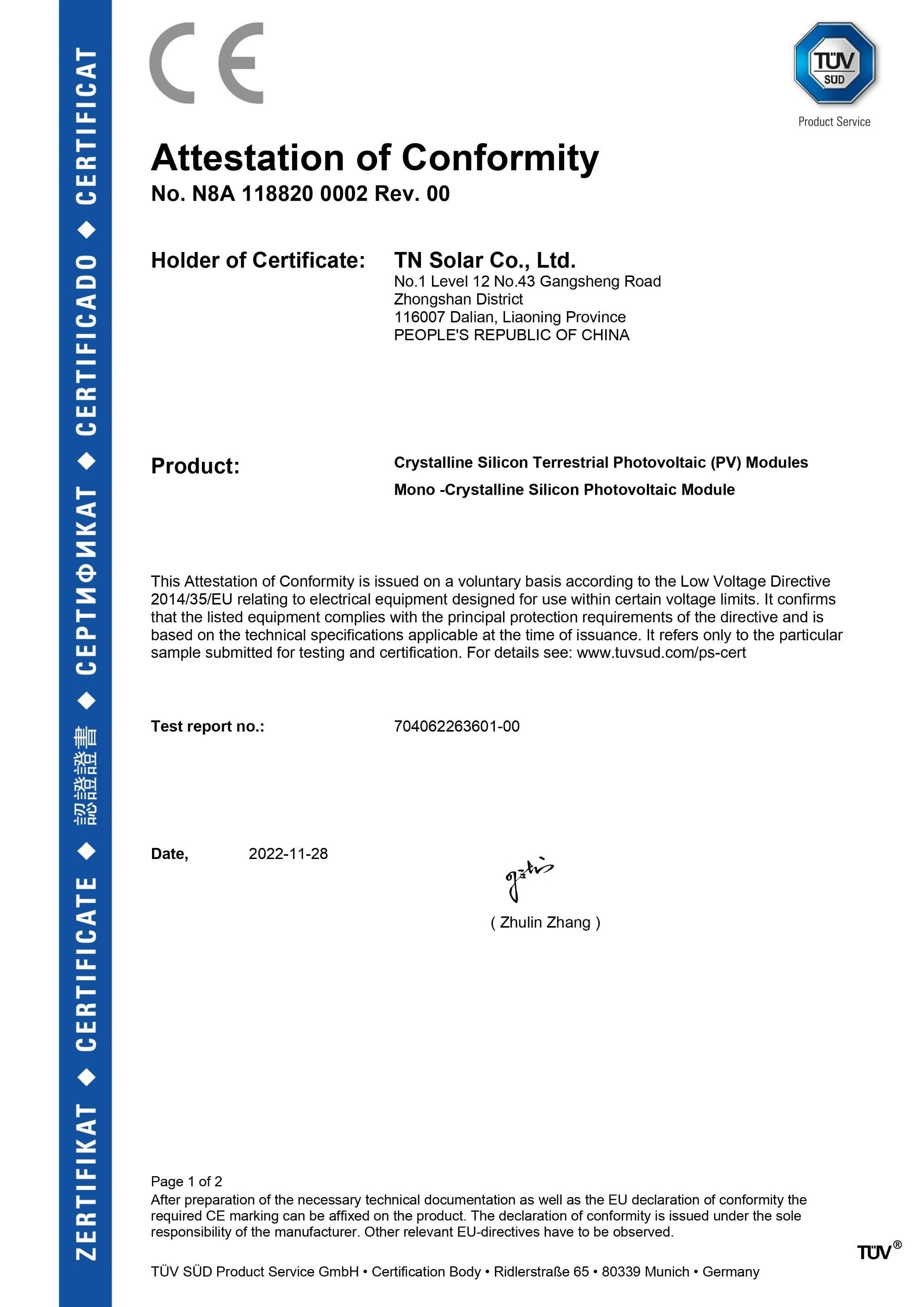 TN Solar is an enterprise specialized in the integrated photovoltaic products, such as solar panels and solar cells .