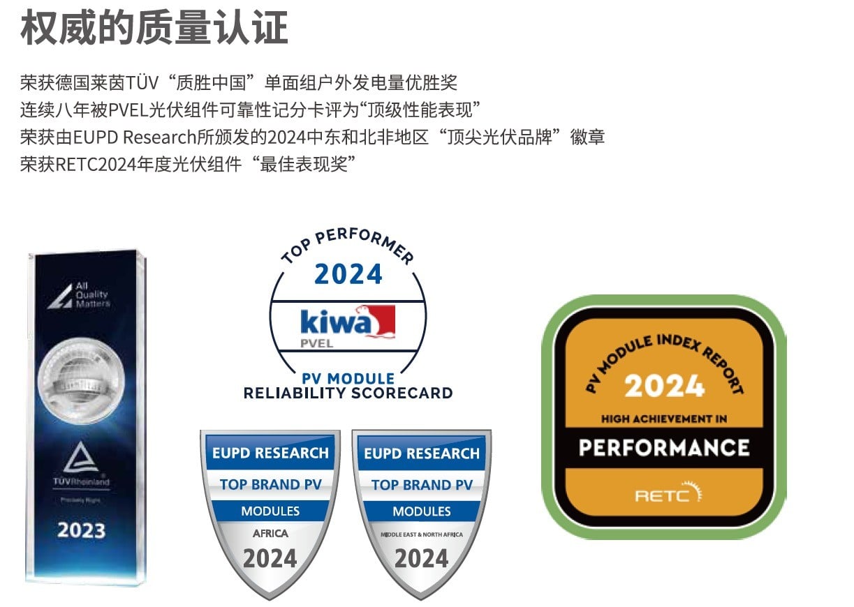 | 功率输出保证 | 99 % 1年年限质保,87.4 % 30年年限质保 | ||||||